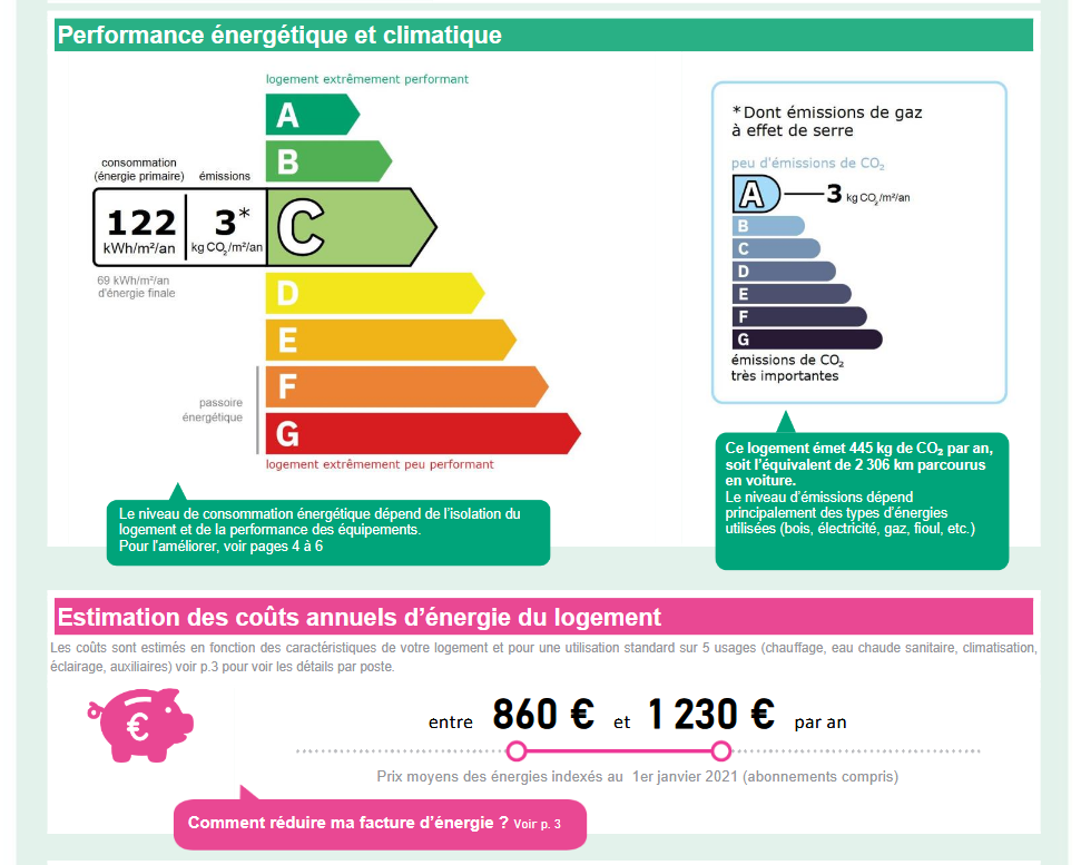 Consommations énergétiques - C - 122 kWh/m²/an.
