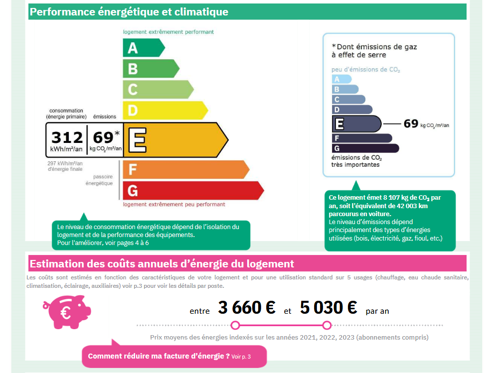 Consommations énergétiques - E - 312 kWh/m²/an.