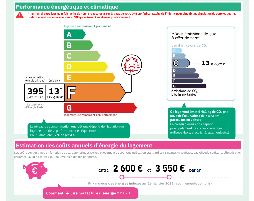 Consommations énergétiques - F - 395 kWh/m²/an.