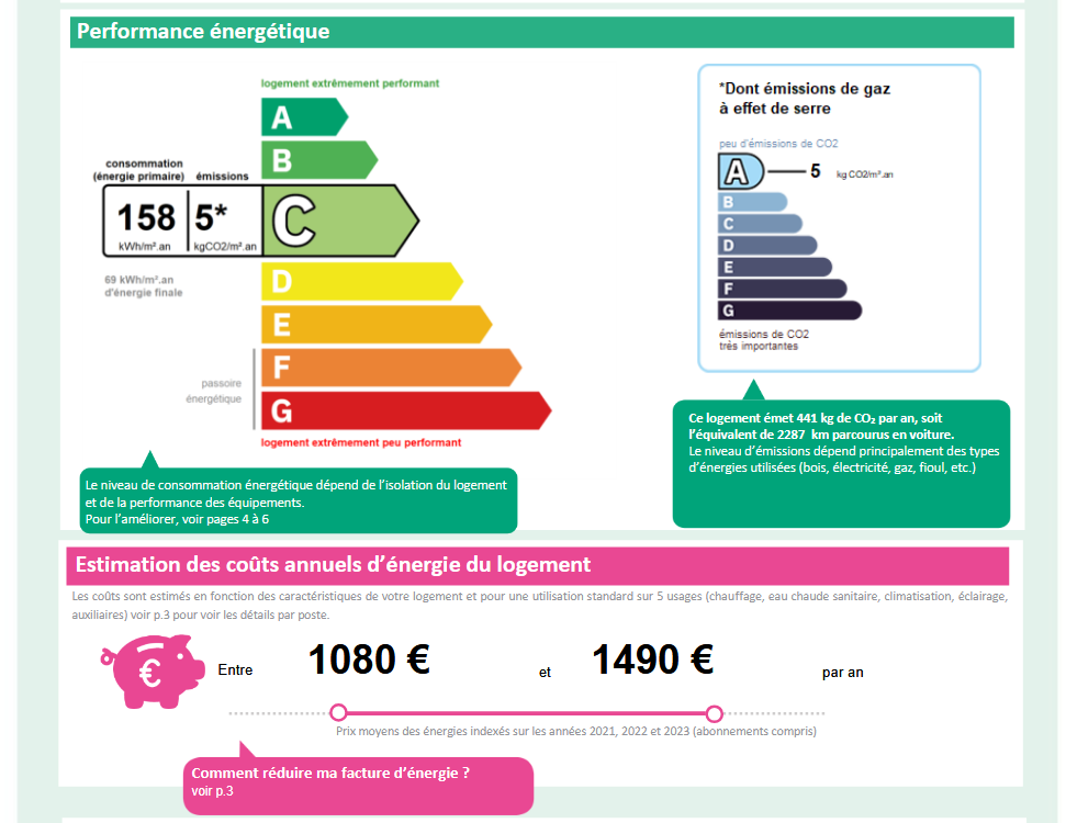 Consommations énergétiques - C - 158 kWh/m²/an.